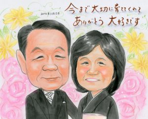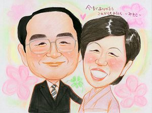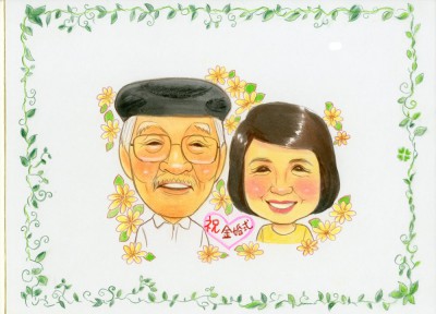 金婚式祝いの似顔絵