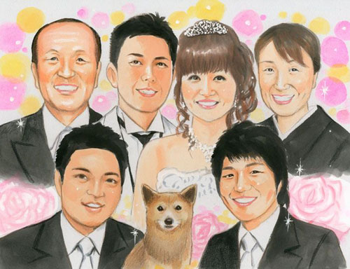 還暦のお祝いにご家族の肖像プレゼント ご結婚の記念にご家族の肖像プレゼント