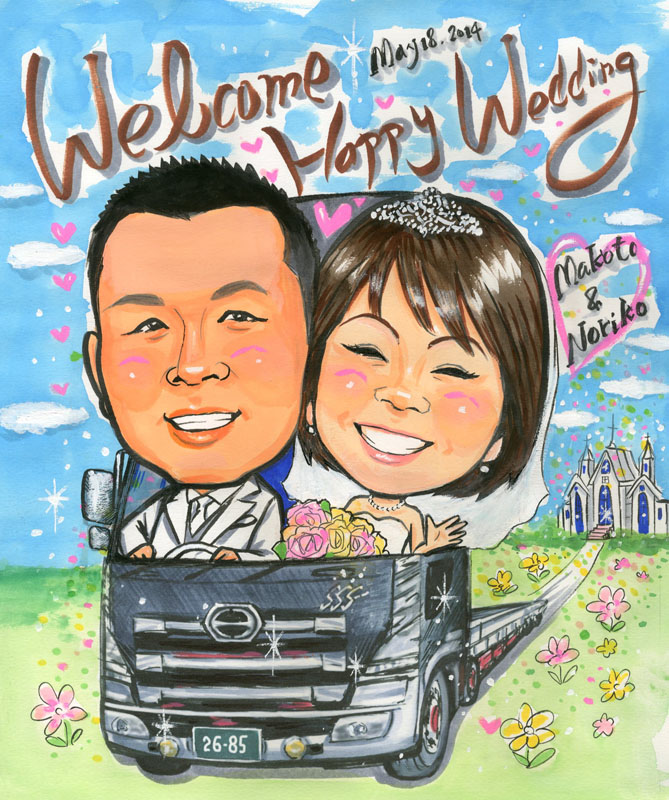 結婚式での花束贈呈のかわりに、似顔絵をプレゼントされてはいかがでしょうか?
