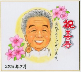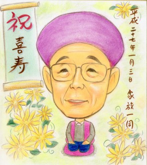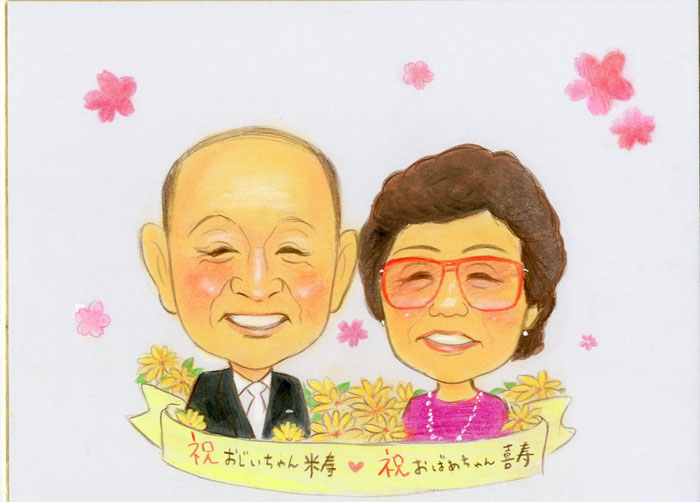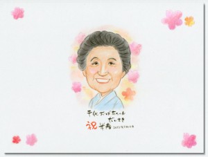 車入り還暦祝いの似顔絵