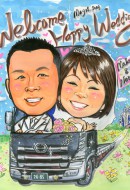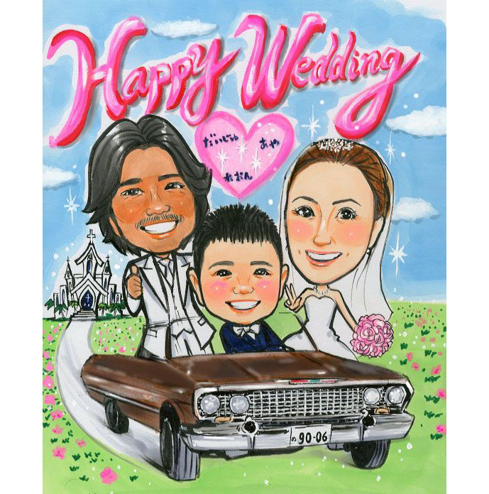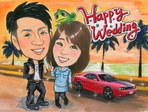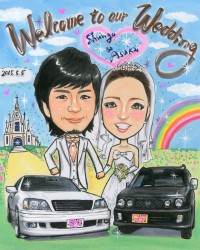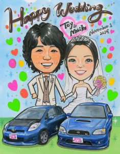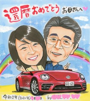 VWビートル入りの似顔絵ボードを描かせていただきました。