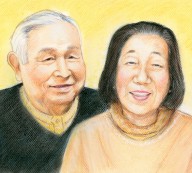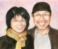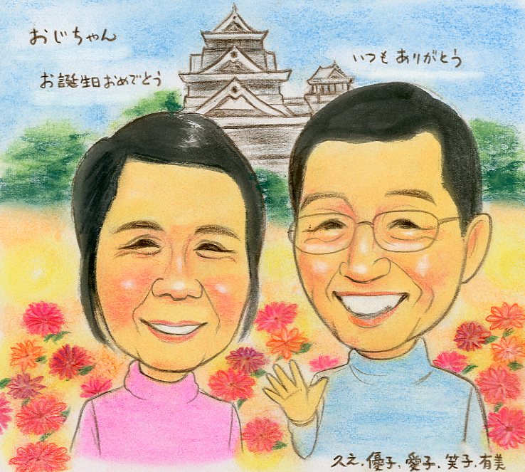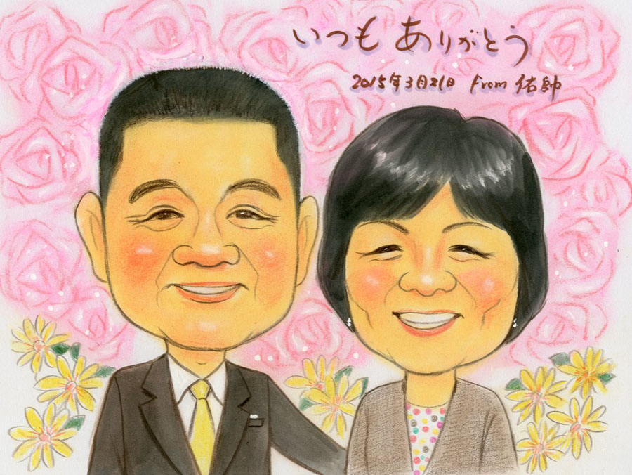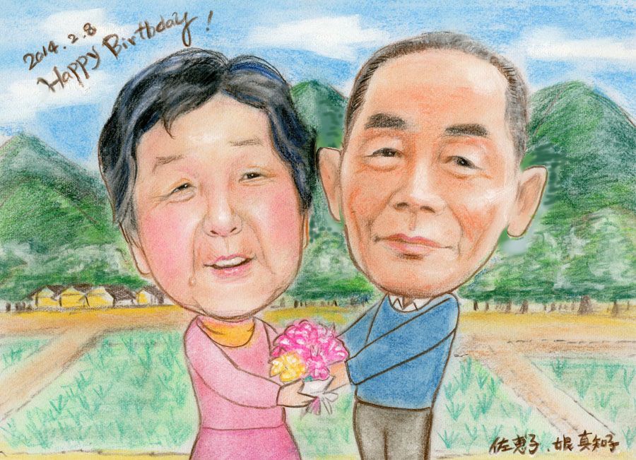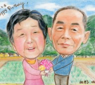 2013.9月 米寿のお祝いにご両親の似顔絵をパステルタッチで描かせていただきました。 埼玉県入間郡のお客様