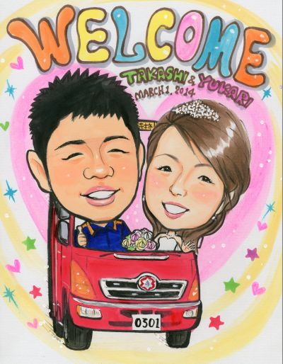 アニメタッチ似顔絵ウェルカムボードプレゼント~大阪市のお客様