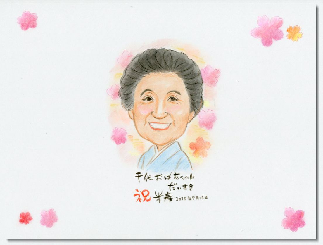 2021年5月 米寿のお祝い 名前ポエム入り似顔絵~愛知県のお客様の声