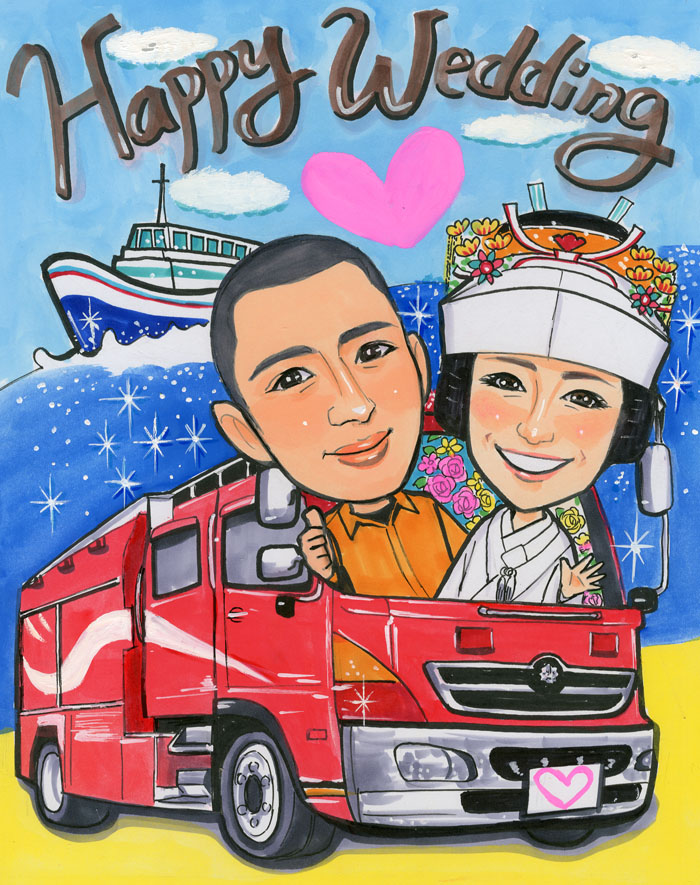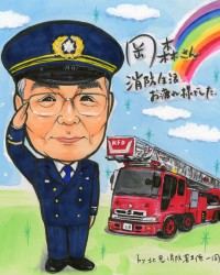 2025.3月 退職祝いの消防車入り似顔絵ポエム~滋賀県のお客様の声