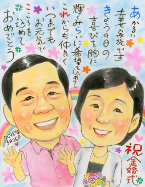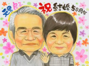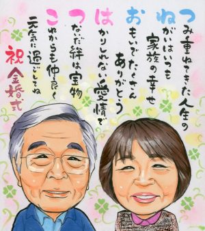 2021.6.8 金婚式 祝い 名前ポエム入り似顔絵プレゼント~長野県のお客様の声