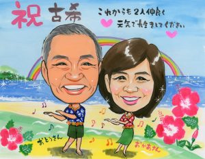 今回は、メールの送受信が不良ですいませんでした。しかし、とても素敵なイラストで私たち姉妹は満足しており両親の還暦祝いに花を咲かせることが出来嬉しく思っています。ありがとうございました。