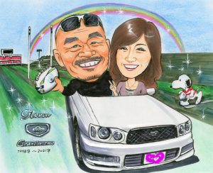 2021年5月 車入り似顔絵プレゼント,背景ラグビー~大阪のお客様の声